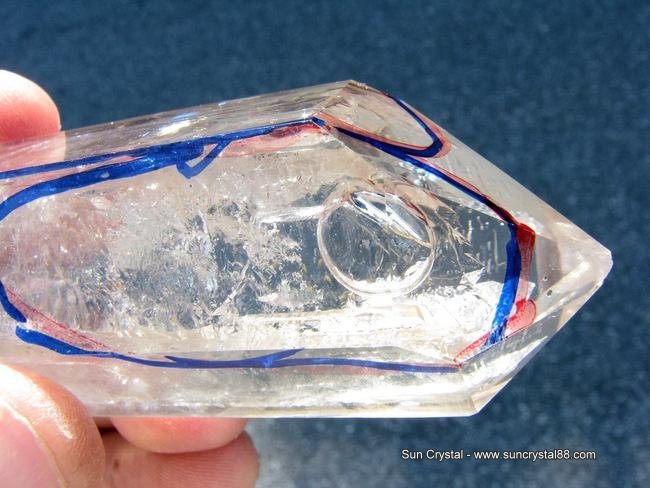 水膽水晶是水晶中的珍品,可能蘊含在各種顏色的水晶之內。水膽水晶,緣於晶內蘊含水滴似動物膽囊而得名。 明澈的水晶與清澈的水珠融為一色,靜止觀察,真難以分辨出誰是晶,誰是水。