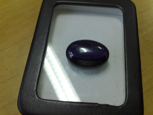粗一看,很容易認為是一顆紫水晶戒面。朋友作為珠寶鑒定師,假如連紫水晶也分不清,還是回家歇著吧。