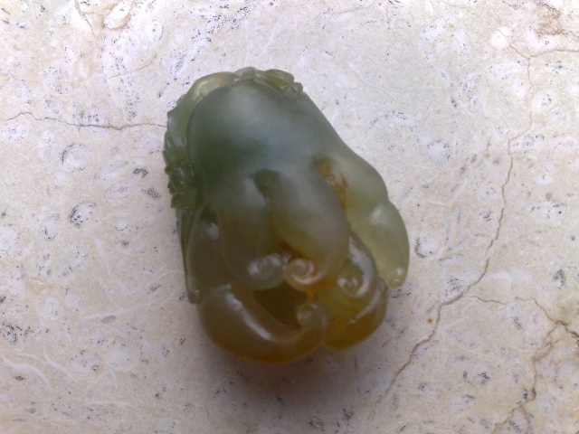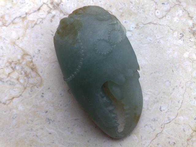 跑了很多店舖,買了一些過得去的貨,當口袋裡的錢剩下不多時,忽然發現了這個剛完工、還沒有拋光的「翡翠蟹鉗」。