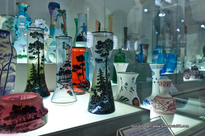 距莫斯科260公里處,有一個小城,俄文翻譯為「鵝-水晶」,我們習慣稱為「水晶城」。該城有眾多玻璃生產廠家,以生產玻璃和水晶製品而遠近聞名。在小城 250多年的歷史中,由俄藝術大師設計製作的水晶手工製品一直是沙皇宮廷、克里姆林宮的御用品、世界各國政府、國會、商界、文化藝術界等上層社會的日用品、高檔禮品、裝飾品和各國文體大賽的獎品,多次獲得國際專業比賽大獎,其精品特有的藝術魅力被收藏於世界各地的博物館、陳列館中,產品出口到法國、捷克、意大利、德國、西班牙、芬蘭、日本、美國、加拿大等國。據說,在衛國戰爭期間,水晶城所有的工廠都停止了工藝品製作,徹夜趕製前線急需的醫用安瓿和令德國法西斯聞風喪膽的燃燒瓶。在市中心有一座規模很大的水晶博物館,裡面收藏了數千件不同時期的水晶玻璃珍品,做工精巧、造型各異、色彩古樸,看了叫人流連忘返。上個世紀50年代以後,「水晶城」的工藝師們採用了稀土金屬著色的新工藝,生產出透明的水彩玻璃,名聲大振,再度成為享譽世界的精美工藝品的「寶藏」。